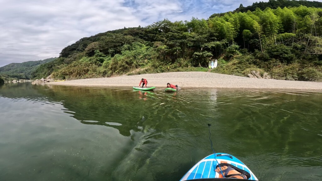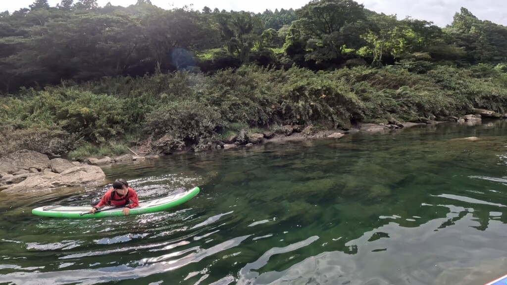 体験中はボードに立って漕ぐ爽快感を味わえるだけでなく、川遊びや魚探し、のんびりとしたクルージングなど、自然を満喫できます。