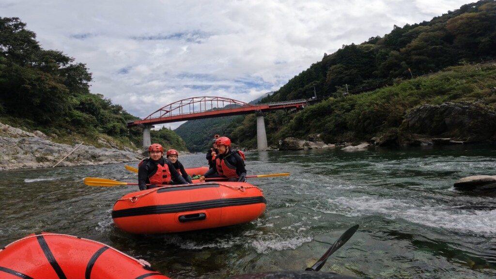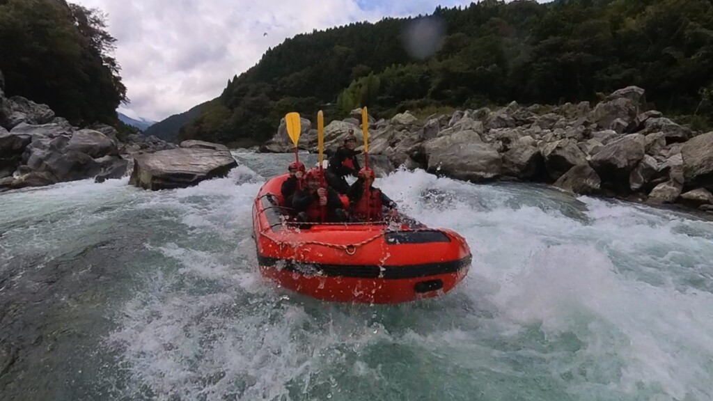 流れの変化や小さな瀬を越えるたびに歓声が上がり、家族みんなで笑顔いっぱい。