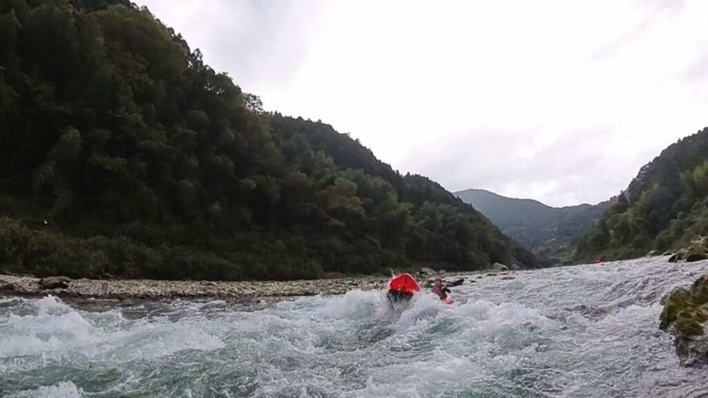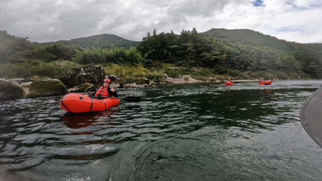 午後からは満腹の眠気も吹き飛ばす勢いで、パックラフト6kmのロングコースを一気に下りました。
