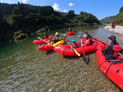 初心者OK!のんびり楽しめる4kmパックラフトコース 四国・高知県の清流「吉野川」で楽しむパックラフト体験。「急流や長距…