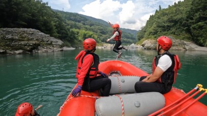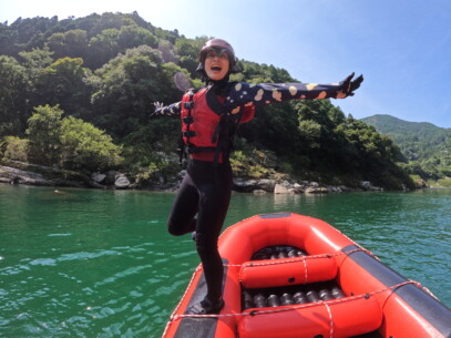 8月16日は特別編!吉野川でラフティングデー 今日は青空が広がる最高の川遊び日和。吉野川の大自然を満喫できる「おまかせ1…