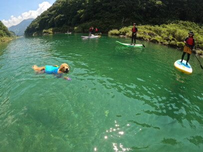 本日の清流は賑やかでした!!サップ体験とカヤック体験で1.5kmをのんびりツーリング よくある。乗ってサー行きましょうで…