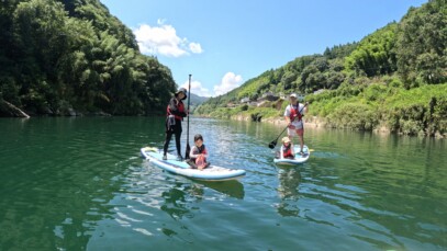 今日は朝からしとしと雨模様。でもそんな天気こそ、水遊びには最高のコンディション!午前はSUP(サップ)体験、午後はファミ…