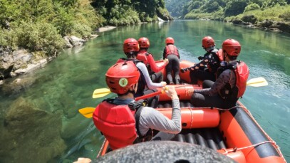 NHKの番組「あんぱん」の舞台にもなった、高知県の清流・吉野川。今日は 大人とティーンのファミリーラフティング にご参加…